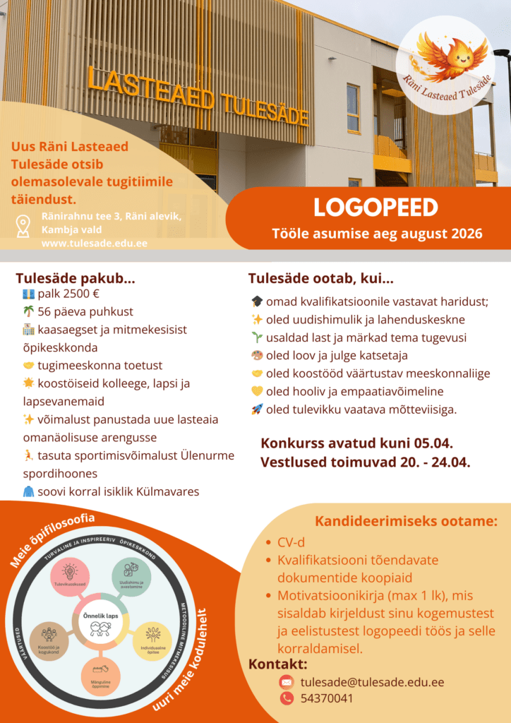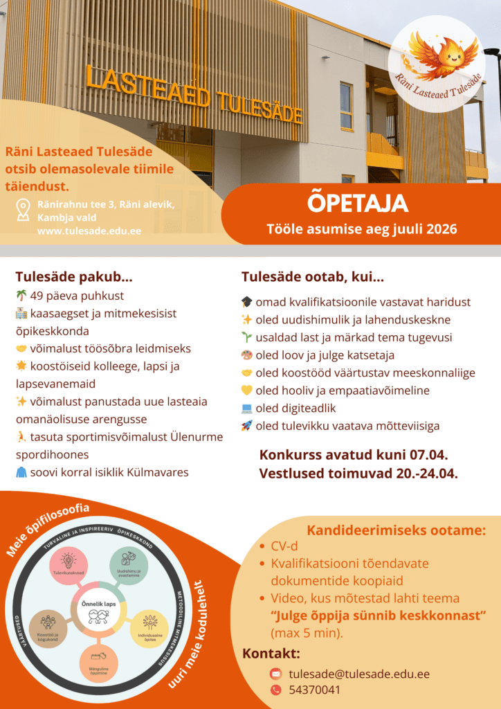 Siin väärtustatakse koostööd, avatud suhtlemist ja üksteise märkamist. Lapsed, õpetajad ja pered loovad koos keskkonna, kus igaühel on hea olla ning kus õppimine on rõõmus ja tähenduslik.